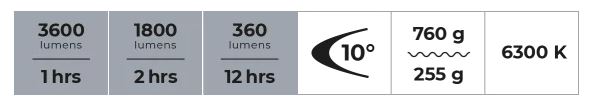 Med 3600 lumen i et presist maskinert design gir denne lykten minst én time med kraftig lys for et uforglemmelig dykk. Den intuitive magnetiske bryteren gjør det enkelt å bytte til 1800 lumen, noe som dobler driftstiden. Med en presis lyskjeglevinkel på 10° gir FL 3600 effektiv belysning i alle omgivelser, uavhengig av vannforhold.